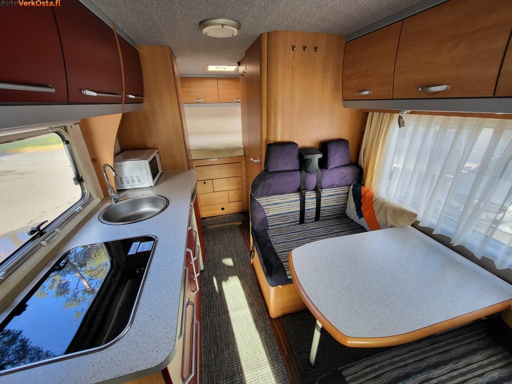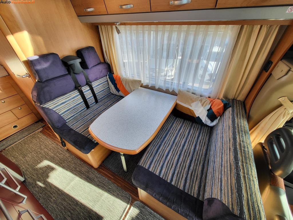 Nyt tarjolla fiksukuntoinen kohtuullisilla kilometreillä oleva matkailuauto! Tilava ja selkeä pohjaratkaisu parivuoteella ja isolla takatallilla!